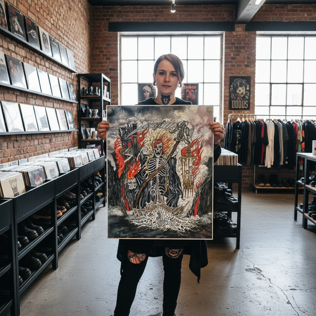 Printed in-house as a premium fine-art giclée using archival methods at Mindzai Creative on archival fine-art stock, this piece stands as both flash and fine art — a dramatic, romantic centerpiece for collectors and tattooers.