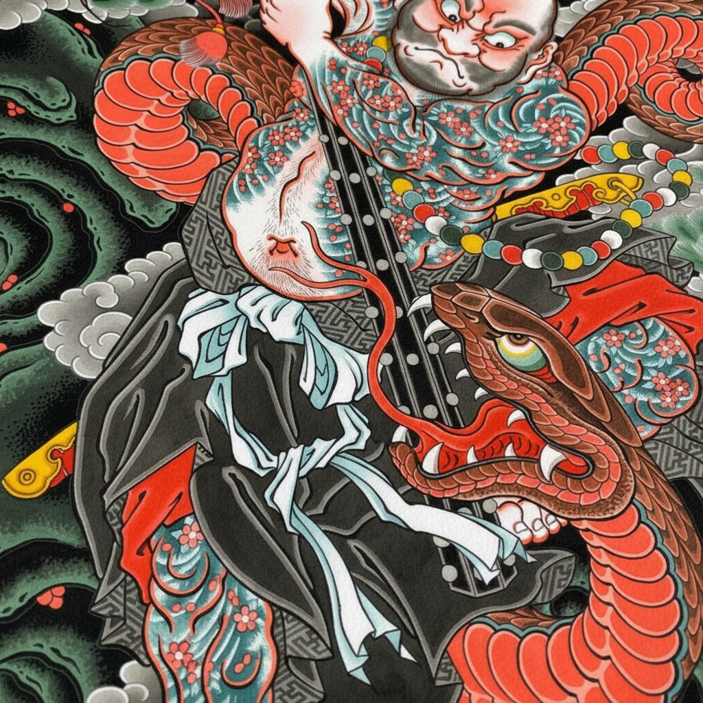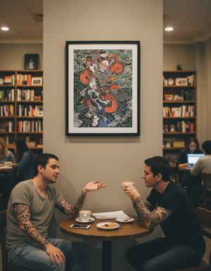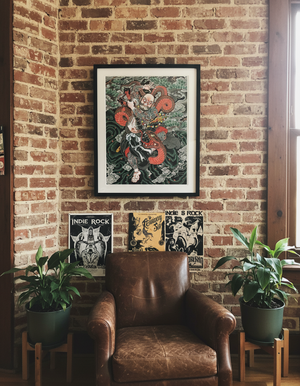 Printed in-house as a premium fine-art giclée using archival methods at Mindzai Creative on archival fine-art stock, this piece stands as both flash and fine art — a dramatic, romantic centerpiece for collectors and tattooers.