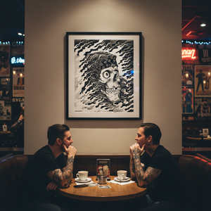Printed in-house as a premium fine-art giclée using archival methods at Mindzai Creative on archival fine-art stock, this piece stands as both flash and fine art — a dramatic, romantic centerpiece for collectors and tattooers.