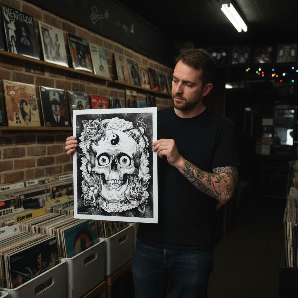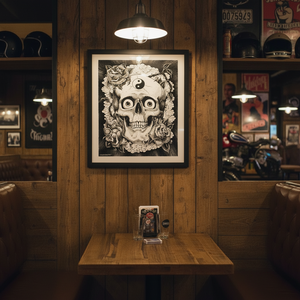 Printed in-house as a premium fine-art giclée using archival methods at Mindzai Creative on archival fine-art stock, this piece stands as both flash and fine art — a dramatic, romantic centerpiece for collectors and tattooers.