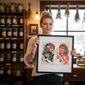 Each print is produced with precision by Mindzai Creative in Austin, Texas, making it a lasting collectible for fine art and tattoo-inspired interiors.