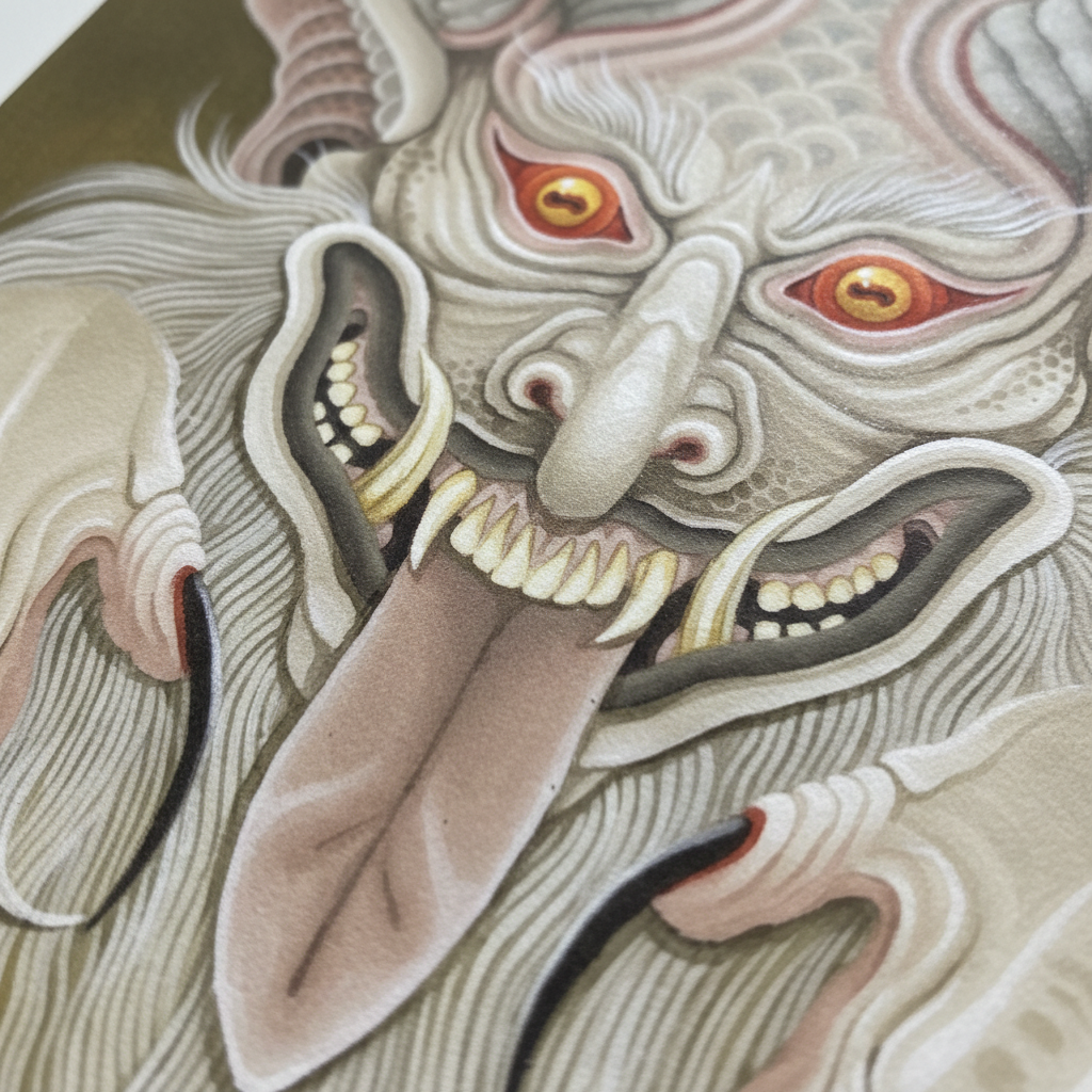 Printed in-house as a premium fine-art giclée using archival methods at Mindzai Creative on archival fine-art stock, this piece stands as both flash and fine art — a dramatic, romantic centerpiece for collectors and tattooers.