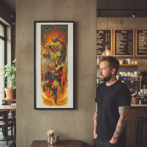 Printed in-house as a premium fine-art giclée using archival methods at Mindzai Creative on archival fine-art stock, this piece stands as both flash and fine art — a dramatic, romantic centerpiece for collectors and tattooers.