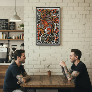 Acrylic and Indian Ink painting on cotton paper. Inspired by classic flash. Revisited and painted by Francesco Ferrara
