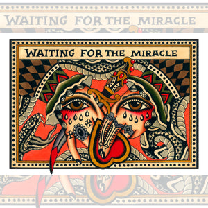Waiting for the miracle by Gaia Zeta, this beautiful print showing tearful beautiful woman with pierced heart by dagger in front of her crying eyes making her look powerful and vulnerable at the same time.