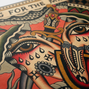 Printed in-house at Mindzai Creative on archival stock, this collectible sheet honors the heritage of flash painting while offering a fresh contemporary mystique. Perfect for collectors, flash lovers, and tattooers seeking elegant feminine mythic imagery.