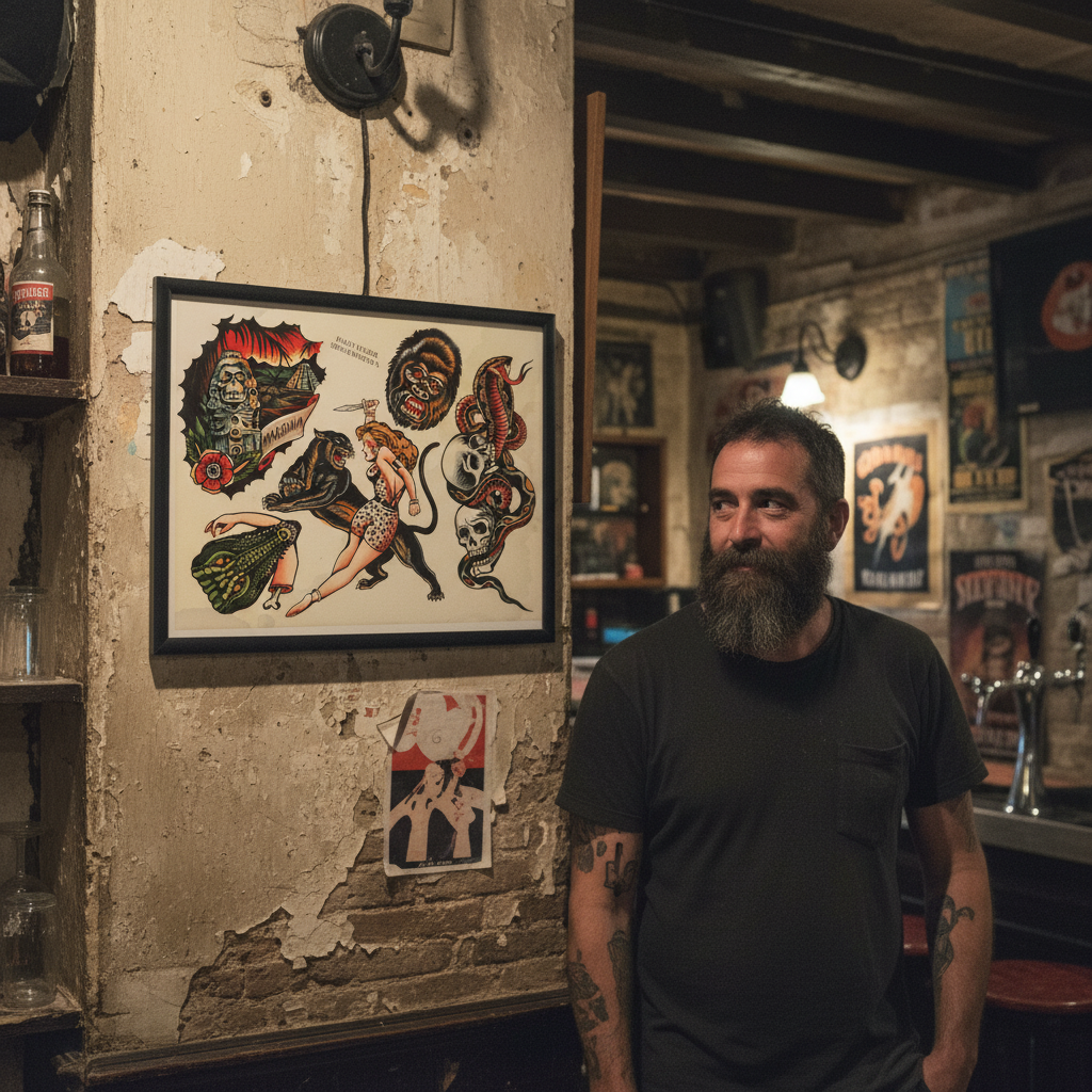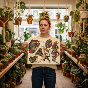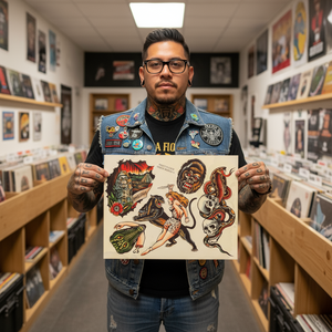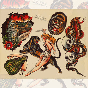 A standout flash sheet for collectors, tattooers, and fans of the dramatic, story-driven side of American Traditional tattooing.