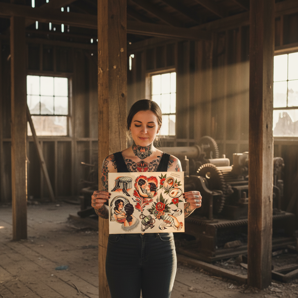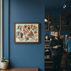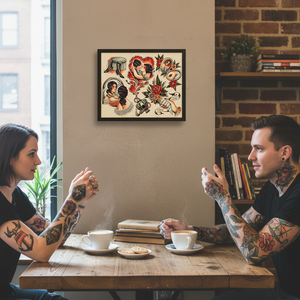 True Love blends timeless traditional tattoo iconography with a soft, romantic touch — inspired by vintage Americana, feminine strength, and the elegance of early tattoo flash.