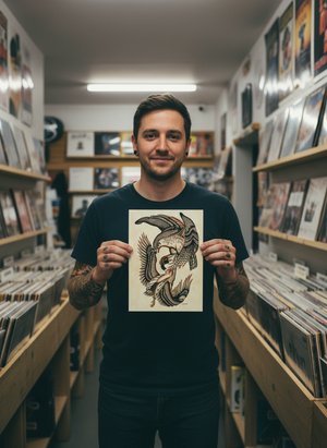 Printed in-house as a premium fine-art giclée using archival methods at Mindzai Creative on archival fine-art stock, this piece stands as both flash and fine art — a dramatic, romantic centerpiece for collectors and tattooers.