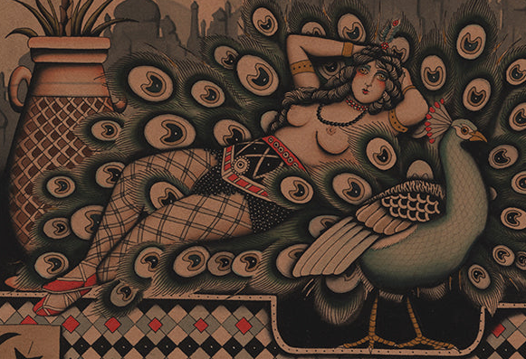 Printed in-house as a premium fine-art giclée using archival methods at Mindzai Creative on archival fine-art stock, this piece stands as both flash and fine art — a dramatic, romantic centerpiece for collectors and tattooers.