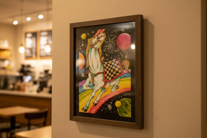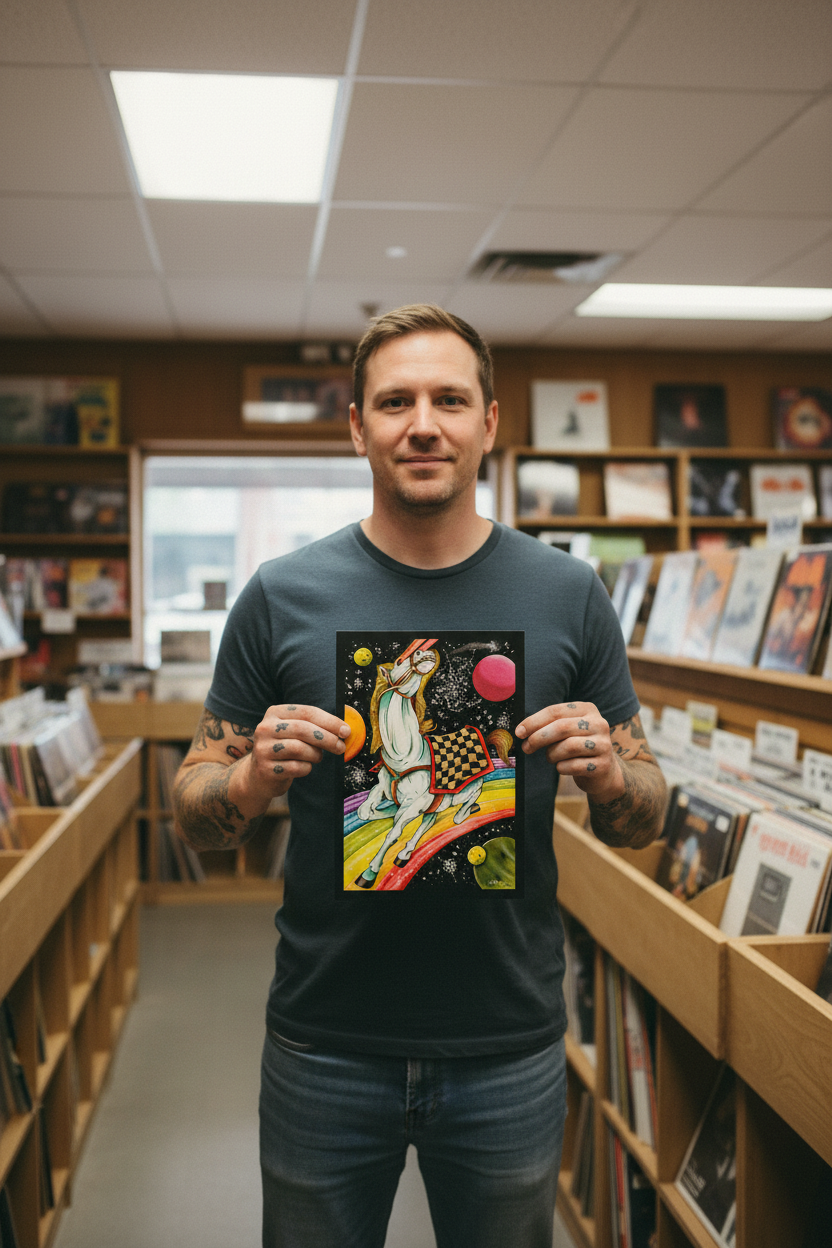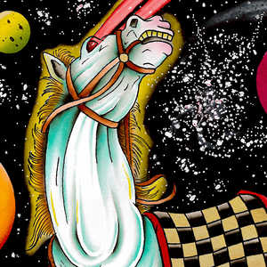 Gianluca is an tattooer and painter from Italy. He's known to mix space age fantasy elements into his traditional tattoo art and paintings. As seen here with this galactic horse painting. This watercolor print and the rest of his collection are exclusively available thru Mindzai Creative.