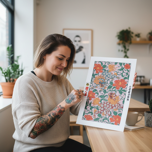Printed in-house as a premium fine-art giclée using archival methods at Mindzai Creative on archival fine-art stock, this piece stands as both flash and fine art — a dramatic, romantic centerpiece for collectors and tattooers.